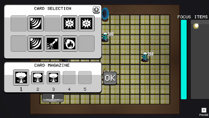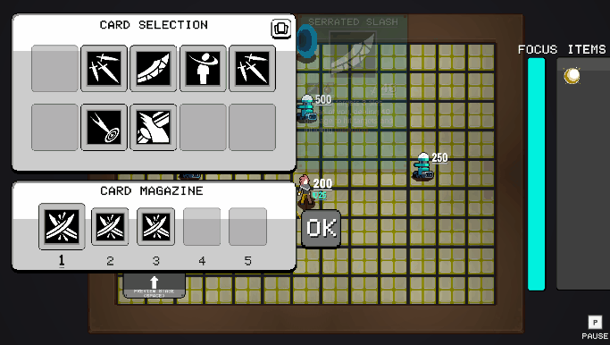 A unique blend of grid-based real-time combat with card-based mechanics and rogue-like progression.